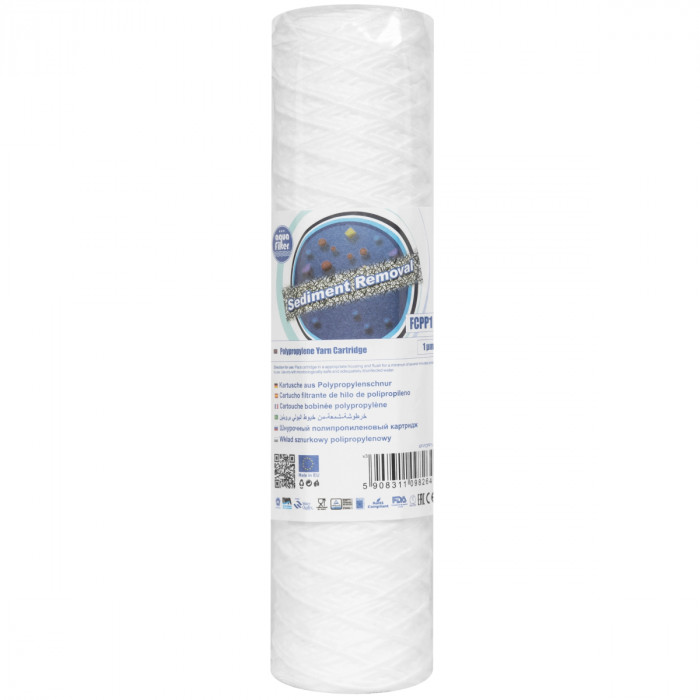 Aquafilter FCPP1 - картридж из полипропиленовой нити для механической очистки холодной воды. Очищает воду от песка, глины, ржавчины, грязи и других взвешенных примесей. Степень фильтрации - 1 микрон.