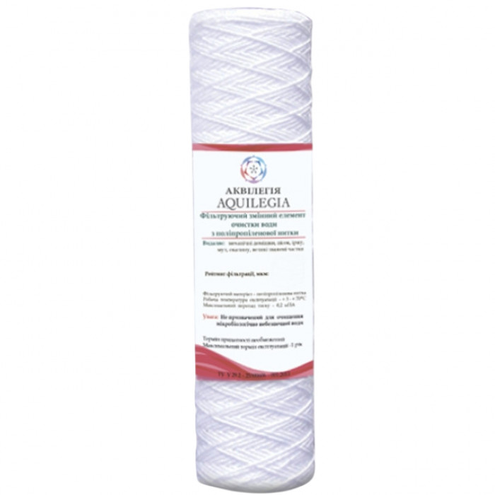 Картридж із шнура Аквілегія використовується для попереднього очищення води. Захищає наступні етапи очищення води, побутову техніку, сантехнічні прилади.