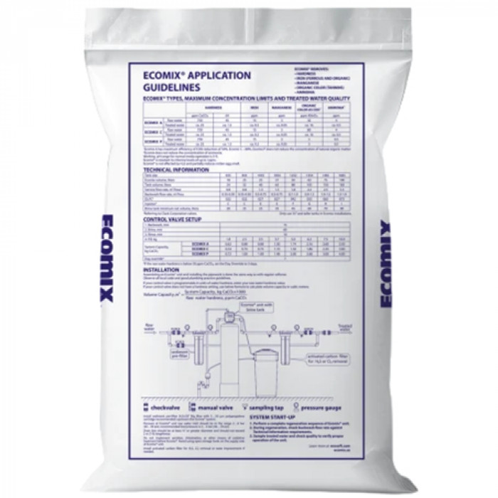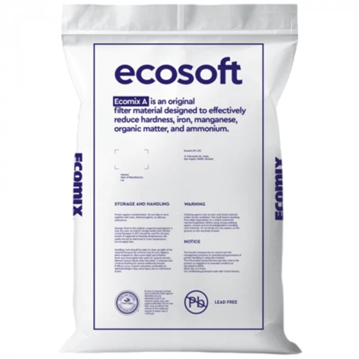 Ecomix A - фільтруюче завантаження для комплексної фільтрації води. Засипка очищає воду від органічних домішок, знижує вміст заліза та марганцю, а також пом'якшує воду. Використання фільтра усуне металевий присмак та неприємний запах, захистить від нальоту та накипу побутову техніку, нагрівальні елементи. Пом'якшення води запобігатиме негативному впливу на шкіру людини.