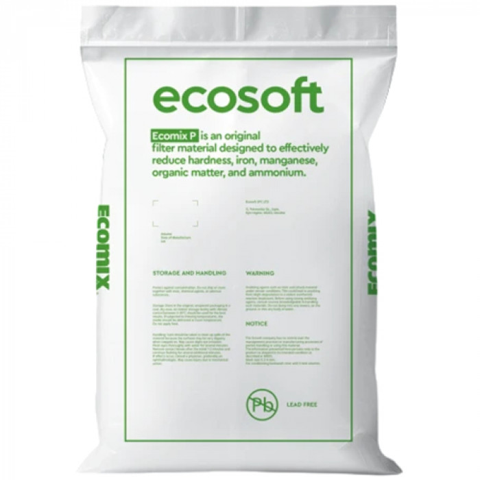 Ecomix Р - фильтрующая загрузка для комплексной очистки воды. Засыпка способна снизить содержание железа и марганца, а также умягчить воду. Использование фильтра устранит металлический привкус и неприятный запах, защитит от налета и накипи бытовую технику, нагревательные элементы. Умягчение воды предотвратит негативное влияние на кожу человека.