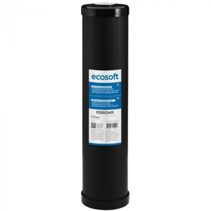 Ecosoft FERROMIX 20BB (CRVF4520ECO) - картридж для очищення води від заліза. Містить суміш каталітичного сорбційного матеріалу, активованого вугілля та pH коректора. Знижує вміст заліза на 80%, а також зменшує концентрацію нафтопродуктів та пестицидів, покращує смак та запах води.