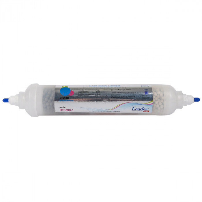 Leader FITF-MIN-5 - картридж для мінералізації води у фільтрі зворотного осмосу. Містить 5 компонентів із мінералів та біо активної кераміки.