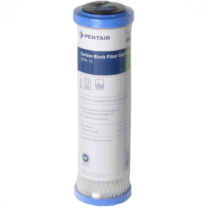 Pentair EPM-10 - картридж з пресованого вугілля для очищення холодної та гарячої води (до +82 градуси). Видаляє з води хлор та хлорорганічні сполуки, прибирає неприємний смак та запах.